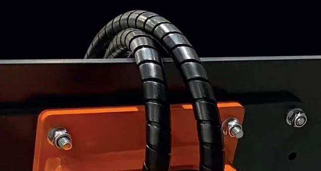 The sturdy hydraulic hoses are protected from scuff wear by heavy-duty spiral wrap.