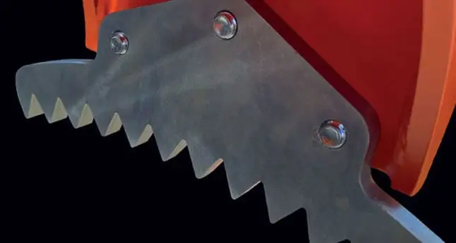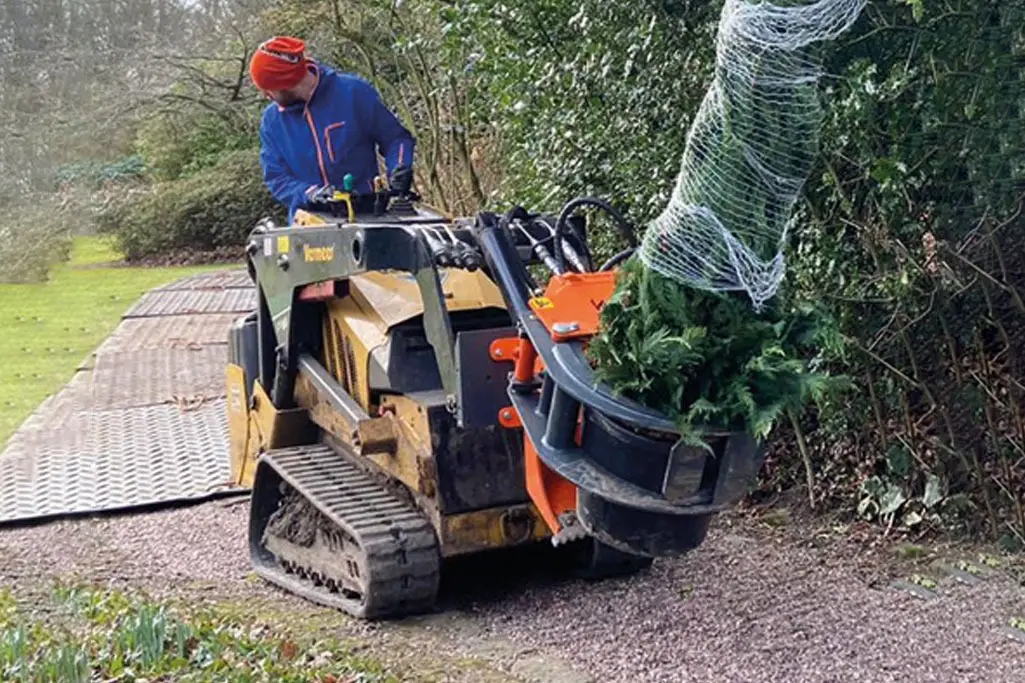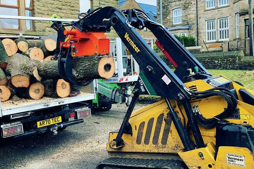 The hydraulic pipes are spiral-wrapped and routed through the centre of the grab, protecting them from scuff wear and catching on branches.