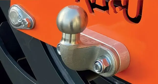 The optional front-mounted tow-ball permits easy movement of trailers and trailed plant, without the need to change attachment.