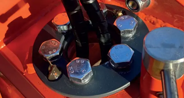 The large-bore ram maximises crushing power, and the pilot-operated check valve prevents the grab from opening without operator input, ensuring load retention.