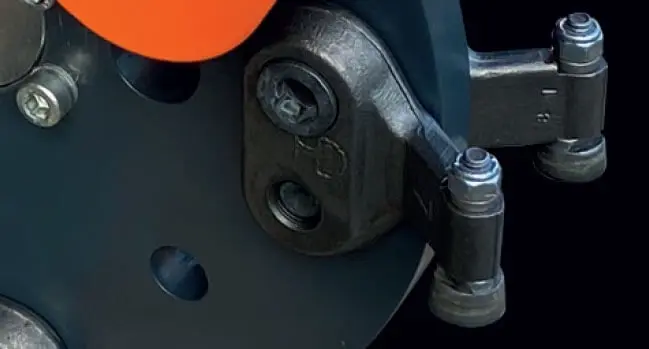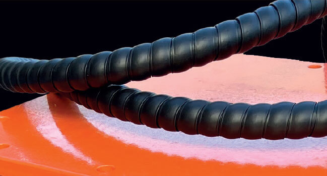The hydraulic pipes are spiral-wrapped, protecting them from scuff wear.
