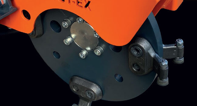 The replaceable, self-sharpening tungsten carbide teeth have multiple cutting edges, reducing wearing part costs, and can easily be rotated or changed without the need to brace the cutting wheel.